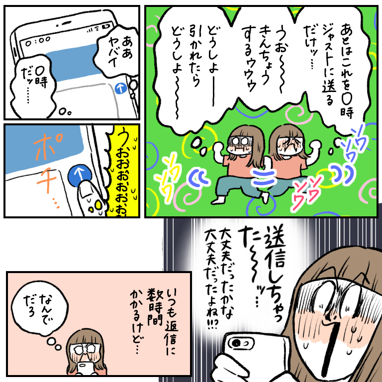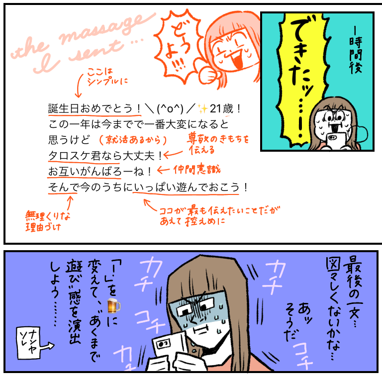 いかにも待ち望んでた感が出てしまいそうで、自分だったら0時20分とかになってから しれっと送りそう笑笑