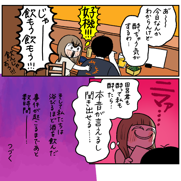 で、「酔って本音を聞き出す作戦」ですが、いつもベロベロになりすぎて
