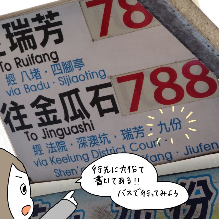 事前にそう調べていたので、タクシーで向かう気マンマンだったのに、偶然九份行きのバスが止まる停留所を見つけ…