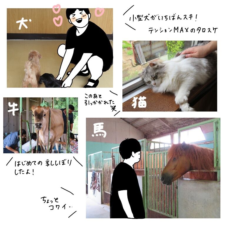 タロスケさんは実は大の動物好きなので思う存分触れ合ってもらいました。