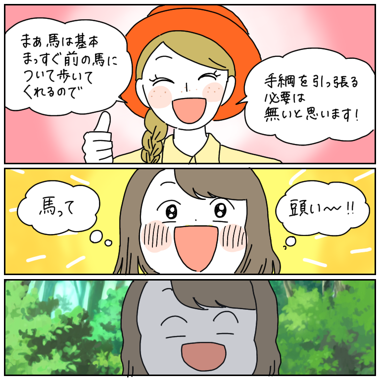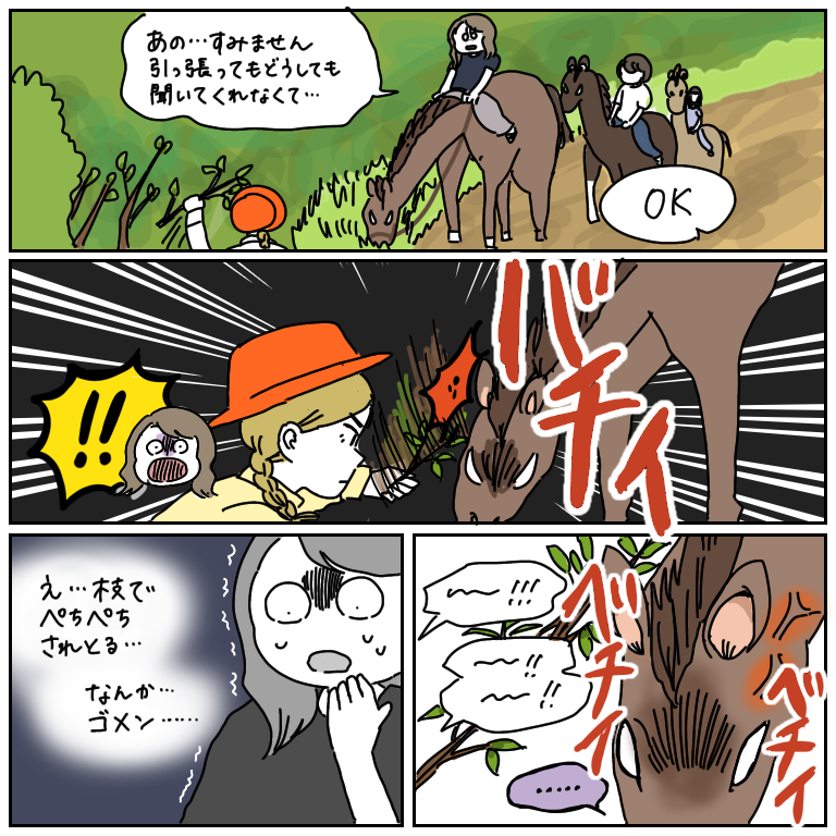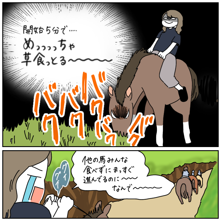 みなさまこんにちは!いつもブログを読んでくださってありがとうございます。今回から、わたしの乗馬体験レポを全5回にわたって漫画にしてゆきたいと思います。どうぞお楽しみください~!後にも先にも、乗っている馬が前足を高く上げたことはありません…もう二度と経験し ...