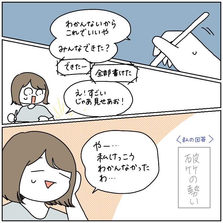 大人のテスト、珍回答メドレー もはや、問題に正解することよりも、みんなの珍回答を見るのが楽しみで仕方ない時間だった。付き合ってくれ、漫画化を快諾してくれたメンバー、ありがとう…!みんなわかんないなりに、絶対空欄にしないその意気込みが素晴らしい。しばちゃんは特に、人名とかまっッッったく ... 2021/07/24 もはや、問題に正解することよりも、みんなの珍回答を見るのが楽しみで仕方ない時間だった。付き合ってくれ、漫画化を快諾してくれたメンバー、ありがとう…!みんなわかんないなりに、絶対空欄にしないその意気込みが素晴らしい。しばちゃんは特に、人名とかまっッッったく知らない人の名前(例 吉岡準)を書くからほんとにおもろい。めめちゃんの「青山しのぶ」もしかり…なんで全く聞いたこともない人名を書こうと思うのか…ほんと最高すぎる…私は変に真面目な部分があり、一切面白い回答ができず 面目ない…ほんとこのメンバーで遊ぶの大好きです!!大人のテスト、めちゃくちゃおもしろかったので、皆さんもぜひご家族やお友達とトライしてみてくださいね★こちらのリンクから読者登録ができます↓ブログが公開されたらLINEでお知らせが届きます。ぜひ登録してくださるとうれしいです!