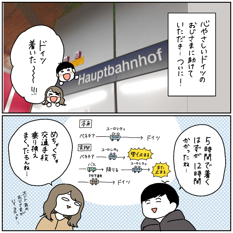 フルシカトされたけども【ヨーロッパ旅行記31】 ヨーロッパ旅行記、第31話です!前回の話はこちらから↓ 最初から読む方はこちらから↓またしても、トラブルの予感ー…!?!?!にしてもねー、駅員さんにあんな綺麗なフルシカトかまされたのは初めてで、戸惑い通り越して怒りが込み上げ、「絶対あきらめない!!!」と少年 ... 2021/10/14 ヨーロッパ旅行記、第31話です!前回の話はこちらから↓ 最初から読む方はこちらから↓またしても、トラブルの予感ー…!?!?!にしてもねー、駅員さんにあんな綺麗なフルシカトかまされたのは初めてで、戸惑い通り越して怒りが込み上げ、「絶対あきらめない!!!」と少年漫画の主人公ばりに心を燃やしていました。結局私の熱意に負け…はせず、上司らしき男の人に指示されてイヤイヤ対応してくれました。なんやねん〜!!日本ではあり得ないことが普通に起こることもだんだん慣れてきた頃です。イタリアでは踏んだり蹴ったりでしたが、コメントでもたくさんおっしゃってくれてる方がいる通り、素敵な人も素敵な場所もたくさんあると思います。私たちの身の振り方が下手すぎて、そういったこと絡みの思い出があまり作れなかったことは大きな反省点ですね!皆様には、気をつけるところは気をつけて、旅や、イタリアを、目一杯楽しんでほしいなと思います。さて、次なる目的地はドイツ!ついに国が変わりますよー!何が待っているのでしょうか!お楽しみに!!続きはこちらから! こちらのリンクから読者登録ができます↓ブログが公開されたらLINEでお知らせが届きます。ぜひ登録してくださるとうれしいです!