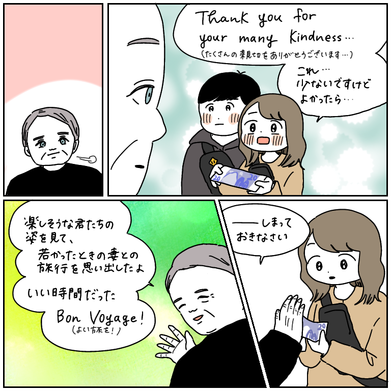 やさしい人の、やさしさを【ヨーロッパ旅行記34】 ヨーロッパ旅行記、第34話です!前回の話はこちらから↓ 最初から読む方はこちらから↓イタリアで様々な痛い目に遭い、すっかり人を疑い警戒するクセがついてしまっていたことに気づきました。それはとても大事なことではあるのですが、こうして優しい人が差し伸べてくれる優 ... 2021/10/22 ヨーロッパ旅行記、第34話です!前回の話はこちらから↓ 最初から読む方はこちらから↓イタリアで様々な痛い目に遭い、すっかり人を疑い警戒するクセがついてしまっていたことに気づきました。それはとても大事なことではあるのですが、こうして優しい人が差し伸べてくれる優しい手をバッサリ拒絶する自分にはなりたくないな…と感じた出来事でした。とは言えそういう善意の心に漬け込むような詐欺も多いから気をつけなきゃいけないんですけどね…!!いやもうこの辺りの見極め難しすぎますね!!自分の目と、心の声を信じるしかないですね!!ともかくこのドイツの青年には本当に助けられました。切符の買い方がわかったことにとどまらず、カチカチの私の心を溶かしてもらったような気がします。海外で助けられると本当に嬉しくて、自分も日本に帰った時困ってる人を見たら絶対に助けようと心に誓卯と言うのが一連の流れです。ドイツではさっそく良い思い出がたくさんできてますね〜☺️続きはこちら! おまけもらったお花!嬉しくて一日持ち運んでましたマリエン広場の仕掛け時計!かわいかったな〜!タロスケくんに買ってもらった新しいマフラーを自慢するワイカバン開いてるで!!アンタ!気ぃつけ!!おまけのおまけ昨日、しばたまちゃんとさやまちゃんとコラボライブしたときに描いた絵を載せまーす!・クラゲ・スコティッシュフォールド(だったっけ…?猫の種類みたいです)わかりませんでした(ごめんなさい)・コーギーこれはわかりました!!(自信満々)・ディズニーキャラリクエストしてくださった方が好きなラプンツェルをチョイスしました❤️・さやまちゃん(本人からのリクエスト)1分という過酷な時間制限の中頑張りました。結構似たと思う!!・誕生日イラストカゼノコさんという方のお誕生日だったので、「カゼノコ」でイメージするものを描きました。おめでとうございます!・おやゆび姫正解がよくわかりませんでしたがそれらしき雰囲気は出たのではないかと!!!(自画自賛)・みぎわさんスマートになったみぎわさんです。髪型もフォルムも全然違ってた。笑・カビルンルン正解がわからない(何回言ってんだよ)・アンパンマンに出てきそうな架空のキャラまぁぐろぉずすまん です。お寿司屋さんで、呼び込みのバイトをしています。生物なので寿命は切ないほどに短いですが一生懸命生きています。アンパンマンの話、めちゃくちゃたくさんしたな…笑・ハロウィンイラストなんだかテーマがとっ散らかってしまいましたね!ハロウィンっぽいもの詰め込んでみました!ハロウィンのイラストは描いててめーっちゃ楽しいです🎃👻インスタライブのイラストは以上です! こちらのリンクから読者登録ができます↓ブログが公開されたらLINEでお知らせが届きます。ぜひ登録してくださるとうれしいです!