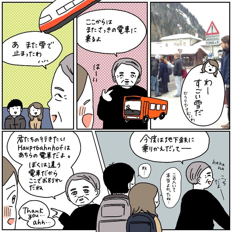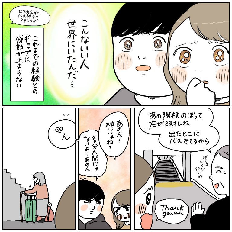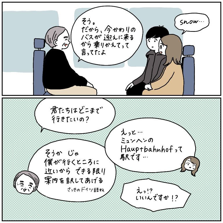 荒んだ心に響く優しさ【ヨーロッパ旅行記32】 ヨーロッパ旅行記、第32話です!前回の話はこちらから↓ 最初から読む方はこちらから↓この男性には本当に助けられたー…!この方がいなかったら、もしかするとドイツまでたどり着けなかったかもしれません。見ず知らずの私たちにこんなに優しくしてくださって、本当に感謝! ... 2021/10/15 ヨーロッパ旅行記、第32話です!前回の話はこちらから↓ 最初から読む方はこちらから↓この男性には本当に助けられたー…!この方がいなかったら、もしかするとドイツまでたどり着けなかったかもしれません。見ず知らずの私たちにこんなに優しくしてくださって、本当に感謝!!😭そして私たちだけでなく、若い女性やご年配の方など、大きい荷物を持っての移動が難しい方々をたくさんの若者がさらっとサポートしていて、なんて素敵なんだと感じました。私は助けたい気持ちはありつつ、つい手を差し伸べることを躊躇してしまうので、こんなふうに自然に、当たり前のことのように誰かを助けられる人になりたいなと思ったのでした。ドイツに着くまでにさっそく、良い出会いがあり幸せいっぱいのスタート!…と思いきや、貴重な食料(パン、ジャム、お菓子など)が詰まったカバンをバスの座席の下に置いてきたことに気づく…問い合わせる手段も持たず…泣く泣く諦める二人でした。食料で良かったよ…(自分に言い聞かせる)次の話はこちら! こちらのリンクから読者登録ができます↓ブログが公開されたらLINEでお知らせが届きます。ぜひ登録してくださるとうれしいです!