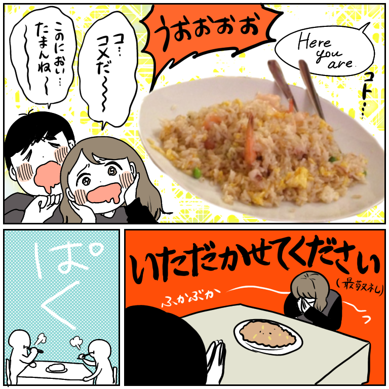 感激の嵐!!美味すぎてトリップしたごはん、それは…【ヨーロッパ旅行記30】 ヨーロッパ旅行記、第30話です!前回の話はこちらから↓ 最初から読む方はこちらから↓おまけ件のチャーハン最敬礼醤油「拝むな」あの日あの時のチャーハンを俺たちは忘れないー…多分、そんなに変わりばえのない、普通のチャーハンだったんでしょうが、当時の私たちにはミシ ... 2021/10/10 ヨーロッパ旅行記、第30話です!前回の話はこちらから↓ 最初から読む方はこちらから↓おまけ件のチャーハン最敬礼醤油「拝むな」あの日あの時のチャーハンを俺たちは忘れないー…多分、そんなに変わりばえのない、普通のチャーハンだったんでしょうが、当時の私たちにはミシュランガイド星500個レベルで旨さを感じましたこの店ならぼったくられてもいいと思ったけど、ぼったくられませんでした米を一口くちに入れた瞬間脳内シアワセ物質がどっッッぱあああああああと溢れました…本当になんか出てたと思います…大袈裟やろ!中華うまかったって話で1話使うんかい!と思う方もいらっしゃるかもしれませんがこの日の中華は私たちにとってすごく印象的な思い出で、備忘録としてこの感覚をしっかりと残しておきたかったのです!またベネチアに行く日がいつか来たら、この中華料理屋さんに行きたいな〜続きはこちら! こちらのリンクから読者登録ができます↓ブログが公開されたらLINEでお知らせが届きます。ぜひ登録してくださるとうれしいです!