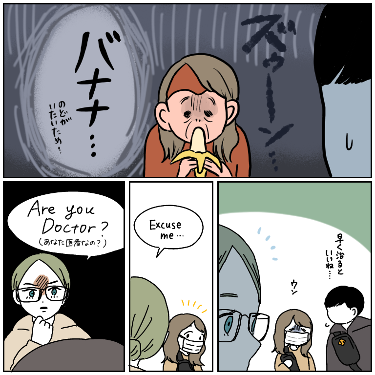 ドイツでマスクしてたら見知らぬ人に声掛けられた【ヨーロッパ旅行記33】 ヨーロッパ旅行記、33話です!前回の話はこちらから↓ 最初から読む方はこちらから↓本当にこう聞かれたんです…カフェで、見知らぬ人に…「はい。ドクターです。手術前ですがバナナを食べたくなったので抜け出してきました。」と答えてたらどうなっていたんだろうか。ていう ... 2021/10/20 ヨーロッパ旅行記、33話です!前回の話はこちらから↓ 最初から読む方はこちらから↓本当にこう聞かれたんです…カフェで、見知らぬ人に…「はい。ドクターです。手術前ですがバナナを食べたくなったので抜け出してきました。」と答えてたらどうなっていたんだろうか。ていうかそんなドクターいるんだろうか。今じゃ考えられないですが、この時はヨーロッパでマスクしてる人って全然いなくて、付けてるだけでチラチラ視線を感じ、カルチャーショックでした!海外は面白いな〜!続きはこちらから! おまけこちらが件のバナナですこの店でこのバナナ、何回食べたかな…バナナ食い倒れタロスケさん大お気に入りのチキン駅構内にあったし、割りに安いしおいしかったらしい!こちらのリンクから読者登録ができます↓ブログが公開されたらLINEでお知らせが届きます。ぜひ登録してくださるとうれしいです!