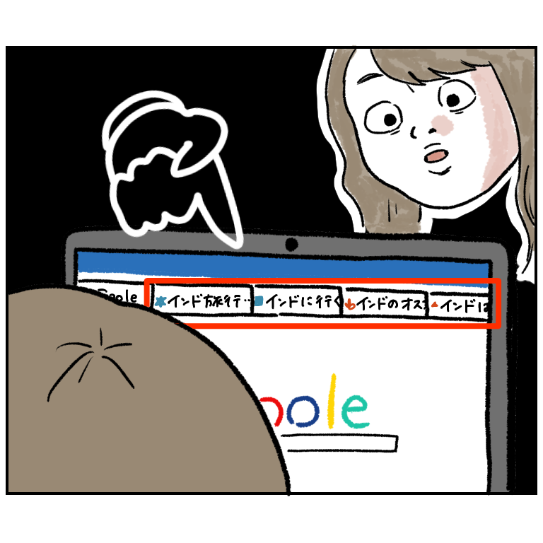 ツンデレ母、旅行計画するの巻 ものすっっっっごい数のタブだった。しかも、そのタブを、ちゃんとグーグルの検索画面で隠してるところが・・・そして完璧な隠蔽工作ができたと喜んでいるところが・・・可愛すぎるぜ!!!!母!!!!ちなみにインド旅行は無事行けました。🐪楽しかったなーーー!!!これ ... 2022/04/20 ものすっっっっごい数のタブだった。しかも、そのタブを、ちゃんとグーグルの検索画面で隠してるところが・・・そして完璧な隠蔽工作ができたと喜んでいるところが・・・可愛すぎるぜ!!!!母!!!!ちなみにインド旅行は無事行けました。🐪楽しかったなーーー!!!これもいつか漫画にできたらええな!! こちらのリンクから読者登録ができます↓ブログが公開されたらLINEでお知らせが届きます。ぜひ登録してくださるとうれしいです!