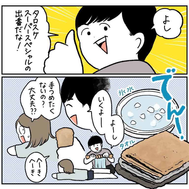 母が、夜寝る時保冷剤を足に巻き付けてタオルで包んでくれたり、