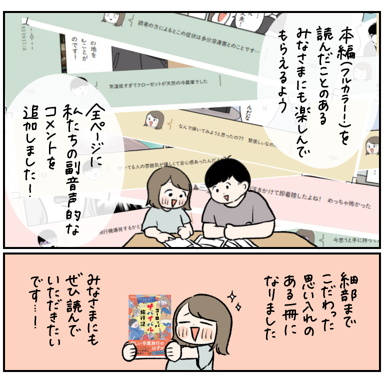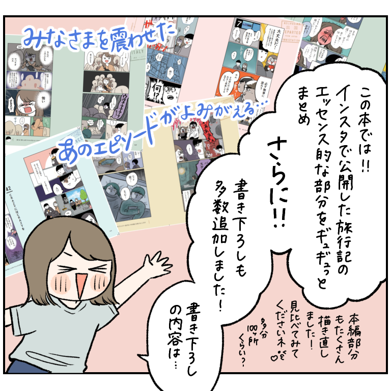 本編の旅行記はフルカラー、描き下ろし漫画とコラムは単色です。