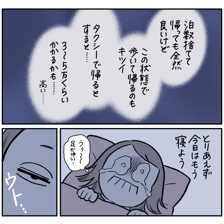 「足全部パンパンになってて重い」