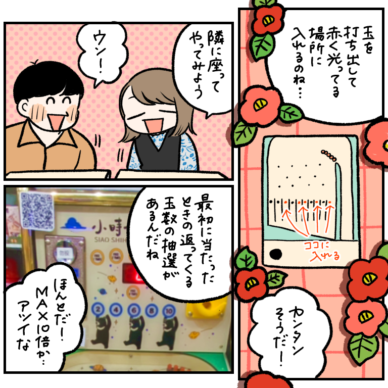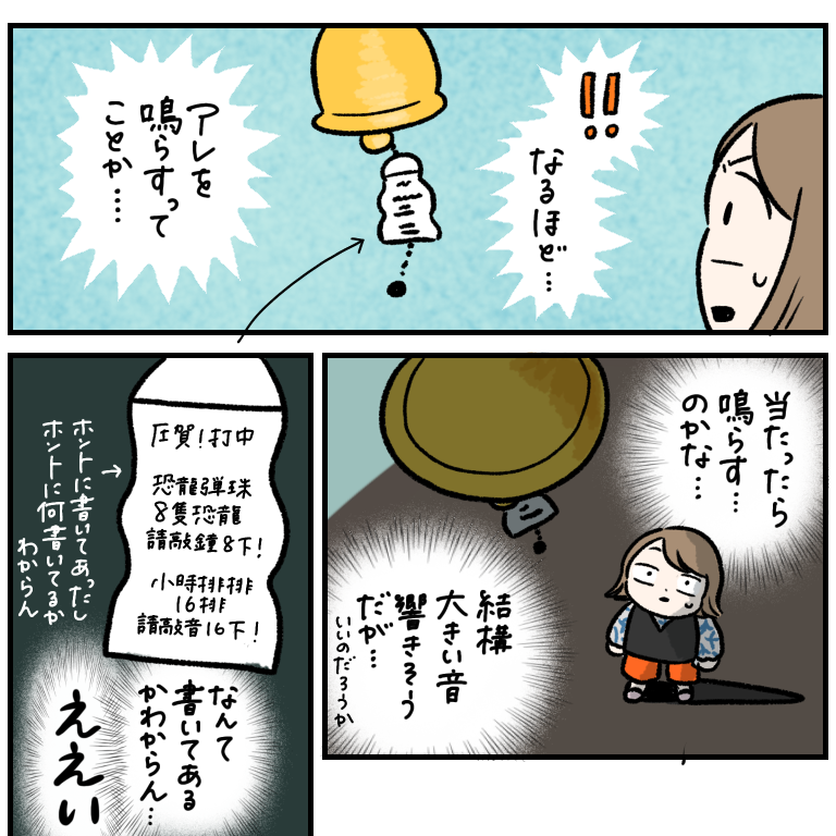 【台湾旅行記5】鐘を鳴らすってことか?な二日目。 前の話の続きです!前の話はこちらから↓ 鐘鳴らした後ヘラヘラしてんのまじチンパンジーすぎて自分で笑ったいまだにこの鐘システムの正解がわかりません…中国語わかる方がいたらぜひ教えてください…ちなみにこの後どうなったかと言うと、ヘラヘラしてたらレジに連れてい ... 2024/06/22 前の話の続きです!前の話はこちらから↓ 鐘鳴らした後ヘラヘラしてんのまじチンパンジーすぎて自分で笑ったいまだにこの鐘システムの正解がわかりません…中国語わかる方がいたらぜひ教えてください…ちなみにこの後どうなったかと言うと、ヘラヘラしてたらレジに連れていかれ、レシート(?)を発行しろと。発行した後、それをヘラヘラしながら財布に入れときました。絶対に違ったと思う。ちなみにちなみにさらにその後、玉がめちゃくちゃ増えたので、景品交換できないか聞いたのですが、「玉を使い切るまで遊ぶしかない」と言われ、絶望。1500発くらいあったので、それを1玉1玉筐体に入れていく手間を考えたら気が遠くなり…「ギブアップ!!ギブアップ!!!」と叫んで玉を返しました。店員さんたち、ドン引きしてた。