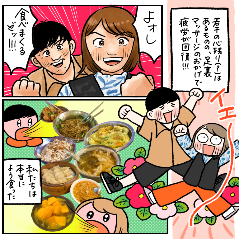 【台湾旅行記3】気持ちいい。の二日目 前の話はこちらから↓ 「キモじゃないでしょーーー」の真意、わかる方います…??!私は惜しくもこの店を出た後気づきました(てかタロスケに言われて気付いた←)正解は…↓↓↓↓「気持ちいい は シュウフーだって教えたでしょ〜」って意味でした!!!!この話をタロス ... 2024/06/15 前の話はこちらから↓ 「キモじゃないでしょーーー」の真意、わかる方います…??!私は惜しくもこの店を出た後気づきました(てかタロスケに言われて気付いた←)正解は…↓↓↓↓「気持ちいい は シュウフーだって教えたでしょ〜」って意味でした!!!!この話をタロスケにしたら、そういう意味じゃない?と言われ、絶対そうやんと!!!!うおーーーー気付かなくてまじごめんなさいすぎた!!!私は「気持ちいいんじゃないの?キモいの??」って意味かと勘違いして店に響き渡る声で「気持ちいい!!!」と主張する客になり下がりました。海外旅行ならではの勘違い、夫婦で連発しております。このマッサージ屋は本当ーーに上質だった!!行ってよかった!!寧夏夜市に程近い場所でアクセスも良かったです✨