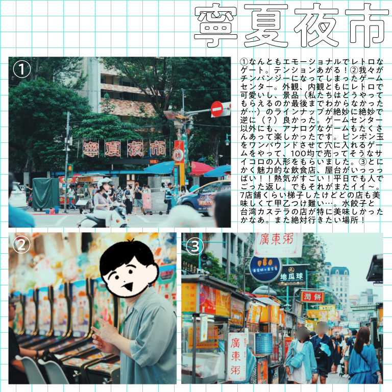 【台湾旅行記7】行った場所・食べたものもろもろ【完】 行った場所などのまとめ投稿でしたー!とっても平和な旅行だったので、どこへ行ったとか何をしたとか細かく描かなかったんですが、平和だったとしても細かく描いたらよかったなーと今更思っています(マジで今更)次はちゃんと旅行レポ!って感じの漫画描きたいなっ!!今回 ... 2024/07/01 行った場所などのまとめ投稿でしたー!とっても平和な旅行だったので、どこへ行ったとか何をしたとか細かく描かなかったんですが、平和だったとしても細かく描いたらよかったなーと今更思っています(マジで今更)次はちゃんと旅行レポ!って感じの漫画描きたいなっ!!今回の投稿は旅行マガジンっぽくしたかったんですが…なんかやっぱり空間の使い方がへたっぴだなぁー!!ギッシギシになってしまう!おしゃれな紙面を作れる人を本当に尊敬します…!台湾っぽい色味も考えながら描くのが楽しい時間でした☺️🇹🇼🍍すっごく短い旅行記でしたが、楽しんでいただけていたらいいな…!何かご質問があれば、可能な限りコメントで答えます!!読んでくださってありがとうございました!次回はまた通常投稿に戻りまーす!