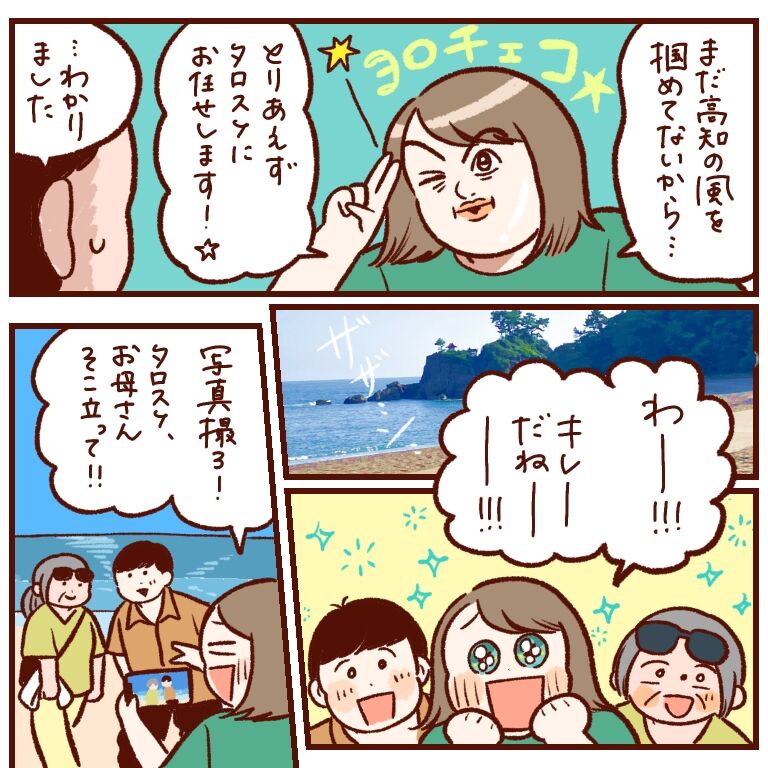 【高知旅行③】まにあえひこうき✈️ この高知旅行旅では、たくさん写真を載せていきたいと思います!漫画が終わってももうワンツースライドしてみてください👆📱母…マジでマイペースの権化みたいな人ヤデ…でも周りに流されないその性格に私は何度も助けられてきたから、責めやしないよ…いや飛行機に乗り遅れ ... 2024/11/12 この高知旅行旅では、たくさん写真を載せていきたいと思います!漫画が終わってももうワンツースライドしてみてください👆📱母…マジでマイペースの権化みたいな人ヤデ…でも周りに流されないその性格に私は何度も助けられてきたから、責めやしないよ…いや飛行機に乗り遅れそうな時は急ごうぜ!!!???(早速責めてる)自分にも緩いし、人のミスにも非常〜に寛容な母です。多分私が「ごめん飛行機取れてなかった」って言っても「じゃ、空港でご飯食べて帰ろ😄✋」って言う人です。これまで母が動揺したり焦ったりした姿、見たことない…鉄人すぎる。さてさてー、いよいよイン高知しましたよっ!もう早速桂浜の綺麗さにウットリですよー…。都内に暮らしてると、海とか川とか見るだけで「旅行きたんだー!!」って気持ちになってブチ上がりますよね。しかもここのちょーど良いところに日除けのあるベンチがありまして…30分くらい寄せては返す波を見ながらポツポツ会話する時間が至福でしたわ…続きます!