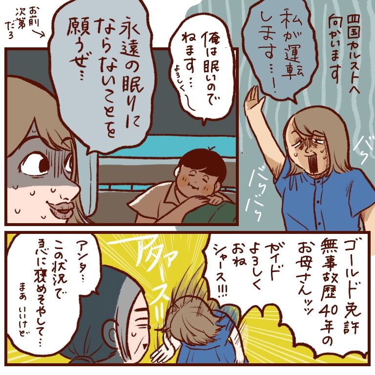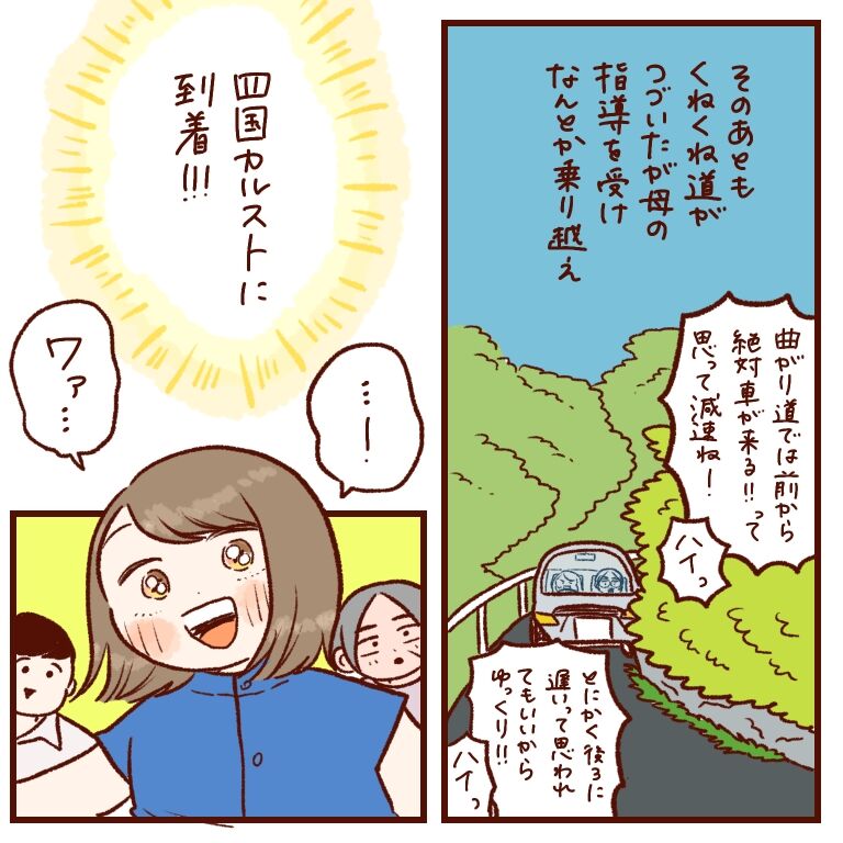 【高知旅行⑦】レッツ高知運転! 初心者の運転乗るのって独特の気疲れあるよね・・・ごめんね・・・タロスケを助手席に乗せると「いい感じだよー」「うまいよー」っていつも言われるのですが(高知でもこの後起きてそう言われた)母からは「もっとゆっくり!!」「ゆっくり走れー!!」と言われます。全然 ... 2024/11/26 初心者の運転乗るのって独特の気疲れあるよね・・・ごめんね・・・タロスケを助手席に乗せると「いい感じだよー」「うまいよー」っていつも言われるのですが(高知でもこの後起きてそう言われた)母からは「もっとゆっくり!!」「ゆっくり走れー!!」と言われます。全然制限速度超えてないのに😂怖いのかな…ごめんね本当に😂助手席の母が寝ちゃうくらい安定感のある運転できるようになりたいもんです…とにかく四国カルスト!!!!!絶!!!!景!!!!です!!!!!!!一生に一回は見たい景色ですこれは!!!!!私も母も夫も感嘆のため息でした…私の運転が失敗してみんなで天国にいるのかな?って錯覚しそうでした(縁起でもないこというな)行くのなかなか大変ですが、みなさんにもぜひこの眺めを体感してほしい…!😭絶対にまた、この景色を拝みに行きたい…と私も思ってます。素敵な思い出をありがとう四国カルスト!!!!