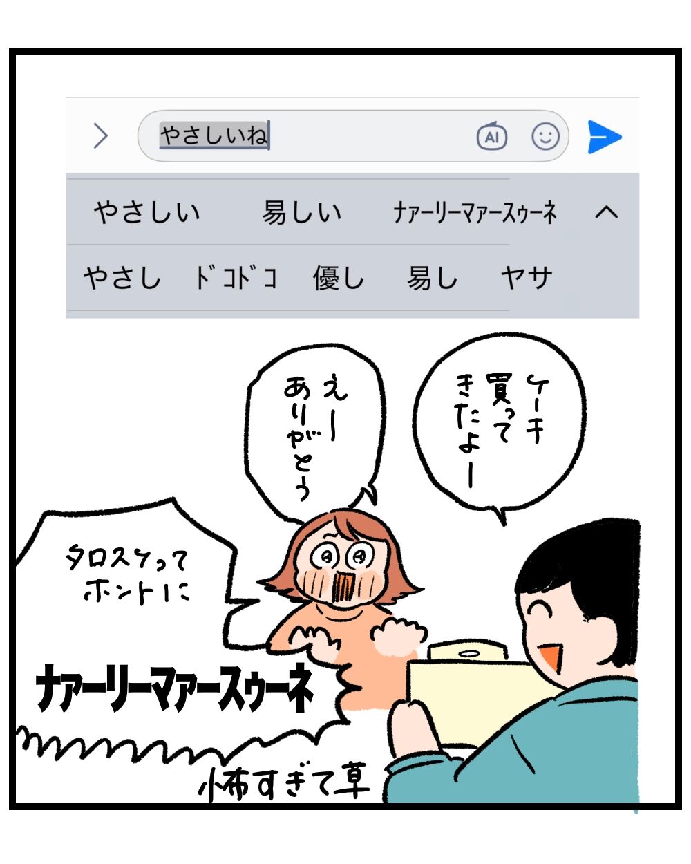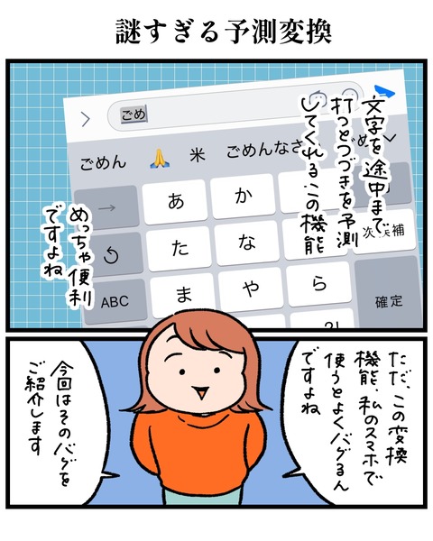 このあいだ一人で喫茶店に入ったら隣の席の女性がお友達に「私の予測変換めっちゃ変なの出てくるの!!」って話してて、わかる!!わかります!!私も!!って入りたかった。そのかたはお友達から全然賛同を得られてなくて、壊れてるんじゃない⁇wって反応だったけど、私もいつも同じような反応を友達からされるんです!!!