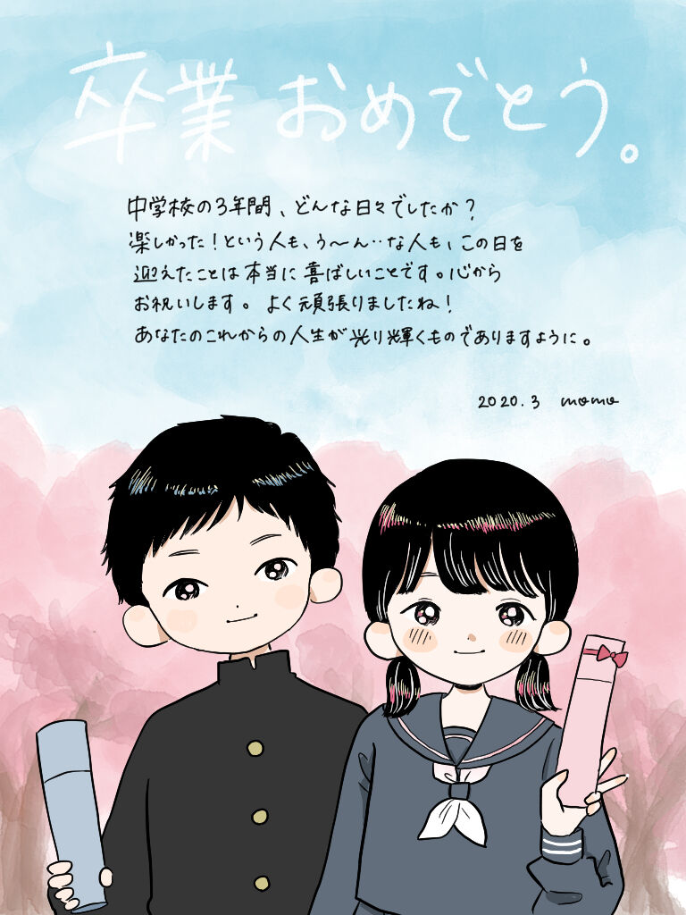 卒業式などが中止になってしまった方々、ほんとうにほんとうに悲しいと思いますしそのご心痛はわたしには計り知れないですが、その分、どこかで楽しいイベントや催しをぜひ企画して、卒業式と同じくらい、もしかしたらそれ以上にすてきな思い出が残せますように…と強く願ってます…!