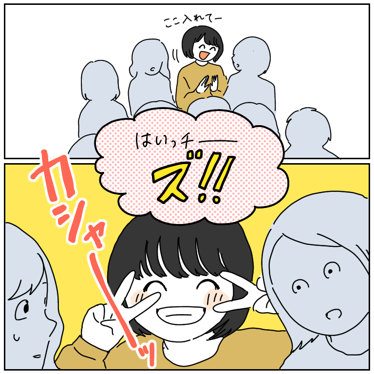 打ち上げの後の集合写真撮影で起きた悲劇 しかも、使い捨てカメラだったからデータ消してもらうことできなかったらしい…あの…ね!!あの~、後ろ姿とかだと、わかんないですよね!!で…まちがっちゃうことも…ありますよね…!!!ねっ!うん!!わたしもね!写真系のミスめっちゃありますよ!!しかも友達のカメ ... 2021/01/21 しかも、使い捨てカメラだったからデータ消してもらうことできなかったらしい…あの…ね!!あの~、後ろ姿とかだと、わかんないですよね!!で…まちがっちゃうことも…ありますよね…!!!ねっ!うん!!わたしもね!写真系のミスめっちゃありますよ!!しかも友達のカメラで、友達と一緒にうつってる写真で、謎に変顔みたいになってるとか。あれ、消してもらいづらいですよね。ほんとは消してほしいけど、おそらく未来永劫残るんだろうなって写真、ごまんとある。人のカメラで写るときはせめてかわいく写りたい。他撮り、こわい。こちらはフォロワーさんからいただいたネタの漫画化です。ネタのご提供、ありがとうございました!こちらのリンクから読者登録ができます↓ブログが公開されたらLINEでお知らせが届きます。ぜひ登録してくださるとうれしいです!