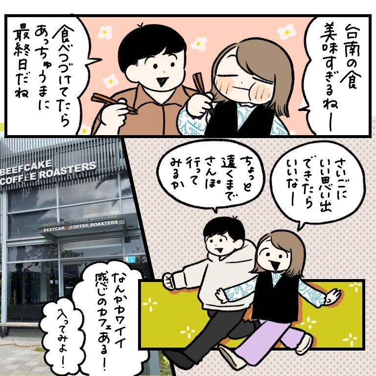 【年末年始台湾旅行⑧】ありがとうラッキー、ありがとう台湾 いきなり終わるーーーー…!!!!!ちなみにこのカフェでの印象的な出来事は他にもあったよ!●一人の店員さんが日本でバイトしてたそうで鬼ほど日本語が上手く、「はいこちら10元のお返しでございまーす、レシート入りますか?(日本語)」など日本にいると錯覚しそうなほ ... 2025/03/17 いきなり終わるーーーー…!!!!!ちなみにこのカフェでの印象的な出来事は他にもあったよ!●一人の店員さんが日本でバイトしてたそうで鬼ほど日本語が上手く、「はいこちら10元のお返しでございまーす、レシート入りますか?(日本語)」など日本にいると錯覚しそうなほどだった●屋外トイレの蚊の量が半端じゃなく、マジで蚊柱を見た。しかもトイレの個室内で。流石に恐怖で震えながら笑った。(狂気)●でもスイーツは美味しくてラッキーも可愛いのでまた行きたい!「次は旅行記っぽくちゃんと描く」的な宣言をした気がするけど今回もこのような感じにー・・!いやさすがに今回は滞在が長すぎて1日1日描いてたらきっと飽きてしまうと思って…(言い訳)2−3泊の旅行のとき、旅行記っぽく描くのトライしてみますね!今回はじめて台南行ったけどまーじでご飯のレベルが高すぎて毎日最高の気分でした。アクティビティもしないし観光施設っぽいところもほぼいかなかったけど毎日超楽しかったのは絶対に食!のおかげ!!食に重きを置いて旅行している人には全身全霊を込めておすすめできる場所です。台南!難点を挙げるとすれば、道がめっちゃガタガタして歩きづらいんですよね。変な段差も多いし、純粋に舗装されてないし、バイクの違法駐車も多いし…なのでキャリーケースを持ち歩く際は結構大変だったし、足の悪い方はきついかもしれません💦あと、英語・日本語が伝わる率も台北より低いので、翻訳アプリを入れていくといいです!台南良さそうだな〜!行ってみたいな!って思っていただけたら嬉しいです🌼私たちもまた絶対行きたい!!!ここまで読んでくださりありがとうございました!🐼🇹🇼謝謝〜