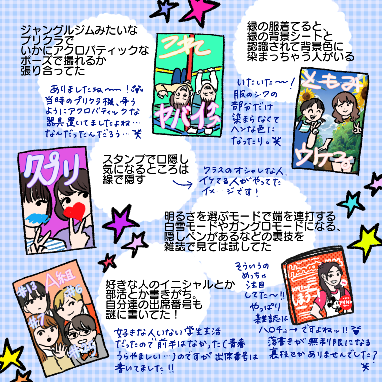 携帯の性能がそこまで高くなかったからこそ、あんなにプリクラが流行ったのかな…とも。